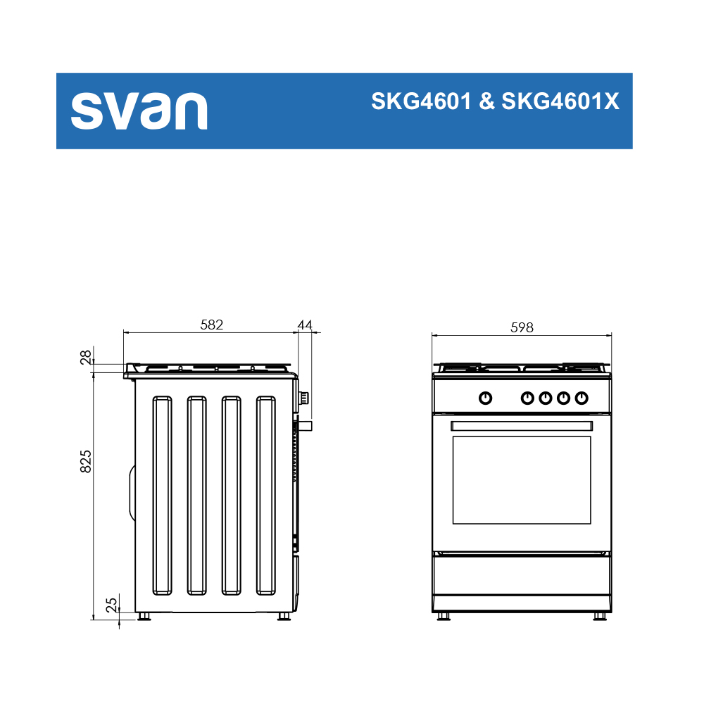 Cocina de gas ancho 60 cm de Svan modelo SKG4601.