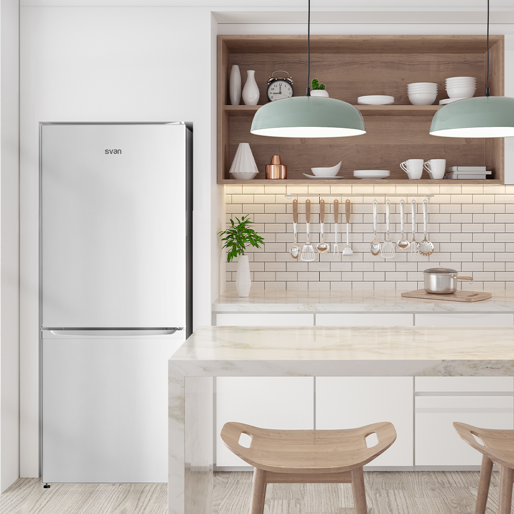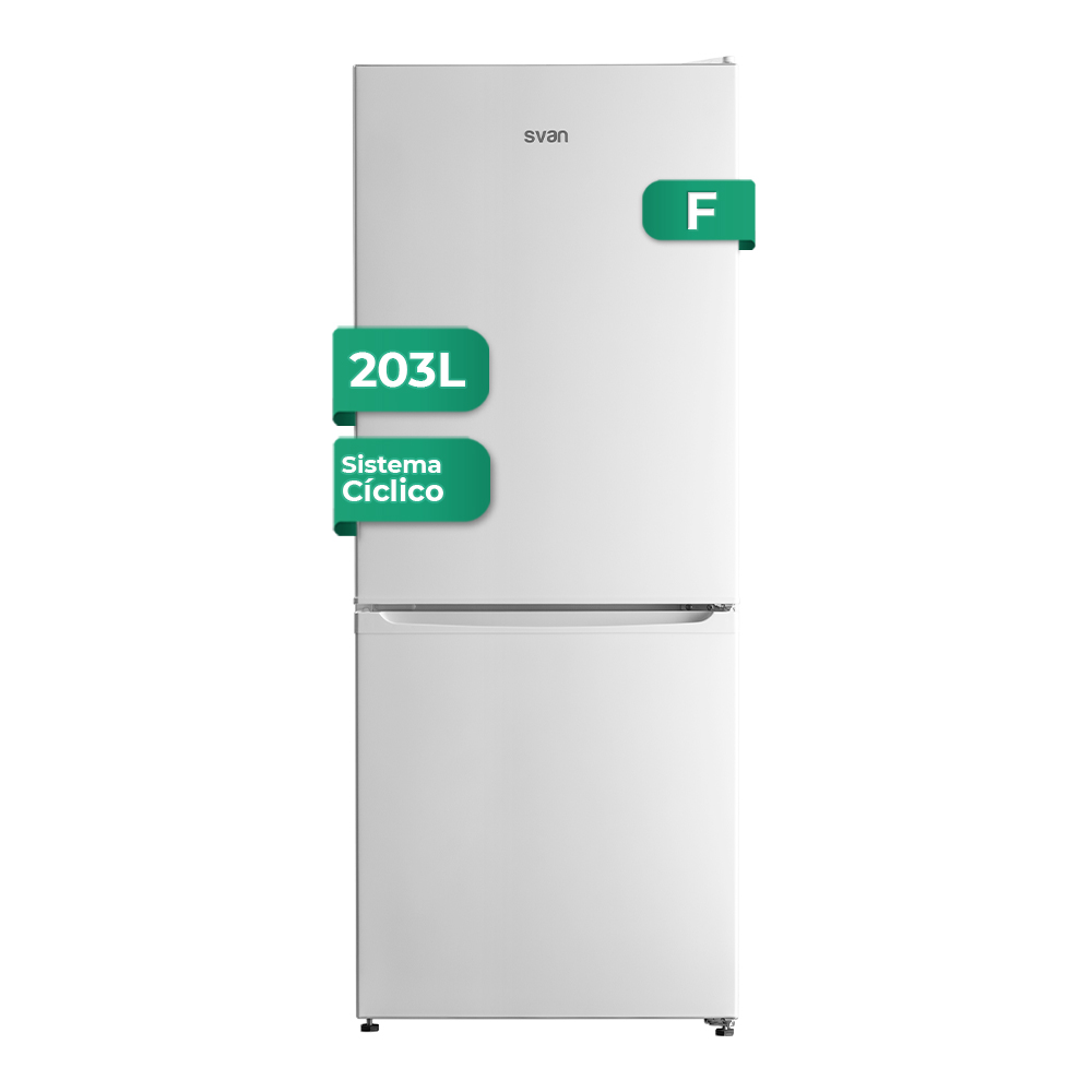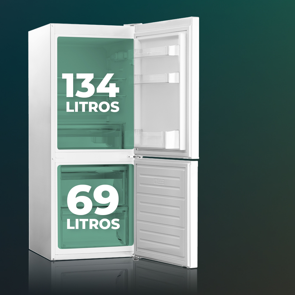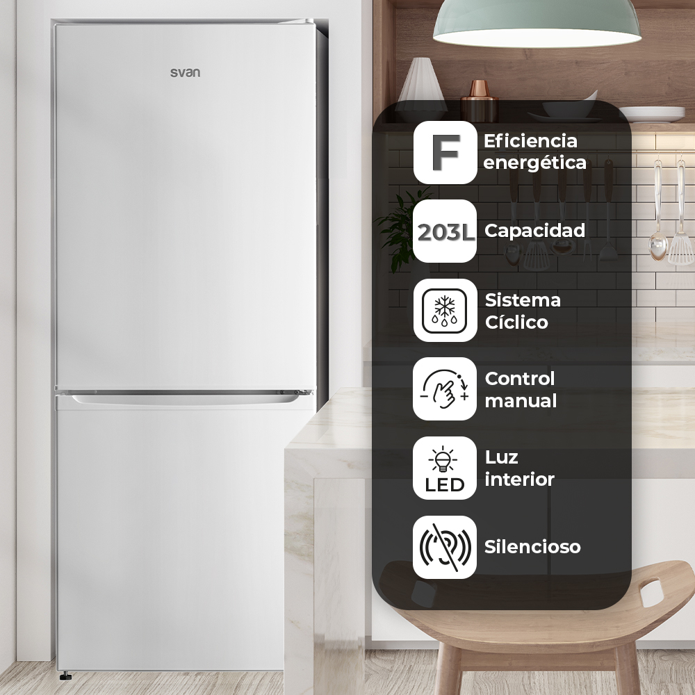 Capacidad total de 203 Litros, con congelador 4 estrellas y múltiples compartimentos para un óptimo almacenaje.