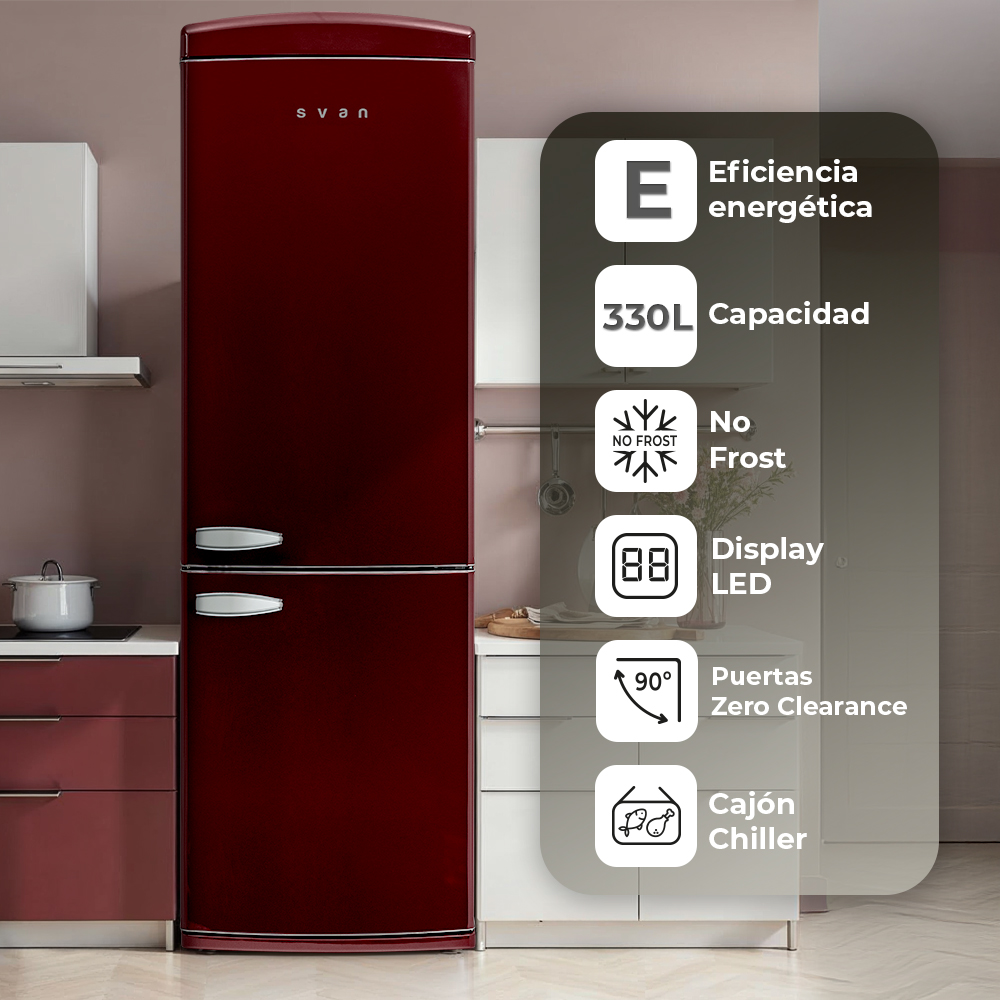 Combi Svan No Frost E 190,1cm 60,5cm 71,5cm Retro maroon Display Mode Super Drawer Chiller