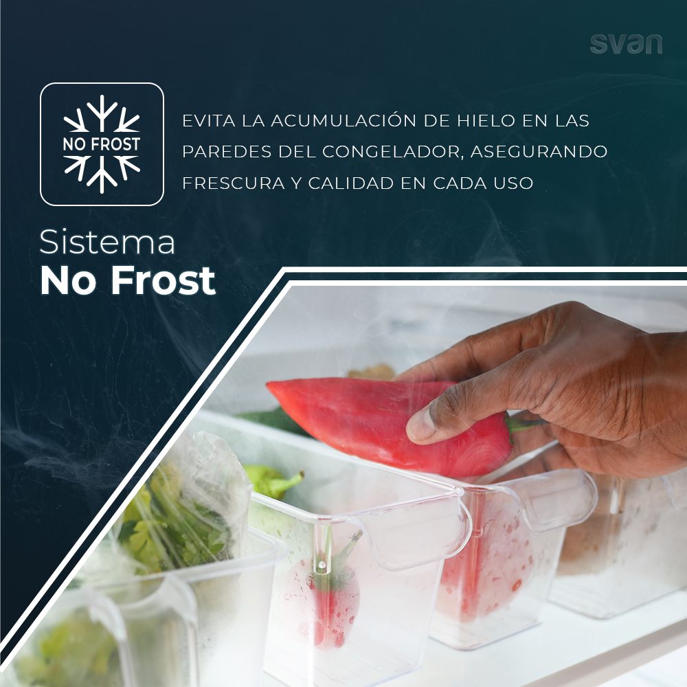 – La Technologie No Frost garantit une conservation optimale des aliments et empêche la formation de glace et de givre dans le réfrigérateur. Associés à la ventilation Multi Air Flow, ils assurent une répartition uniforme dans toute la cavité et un refroidissement plus rapide.