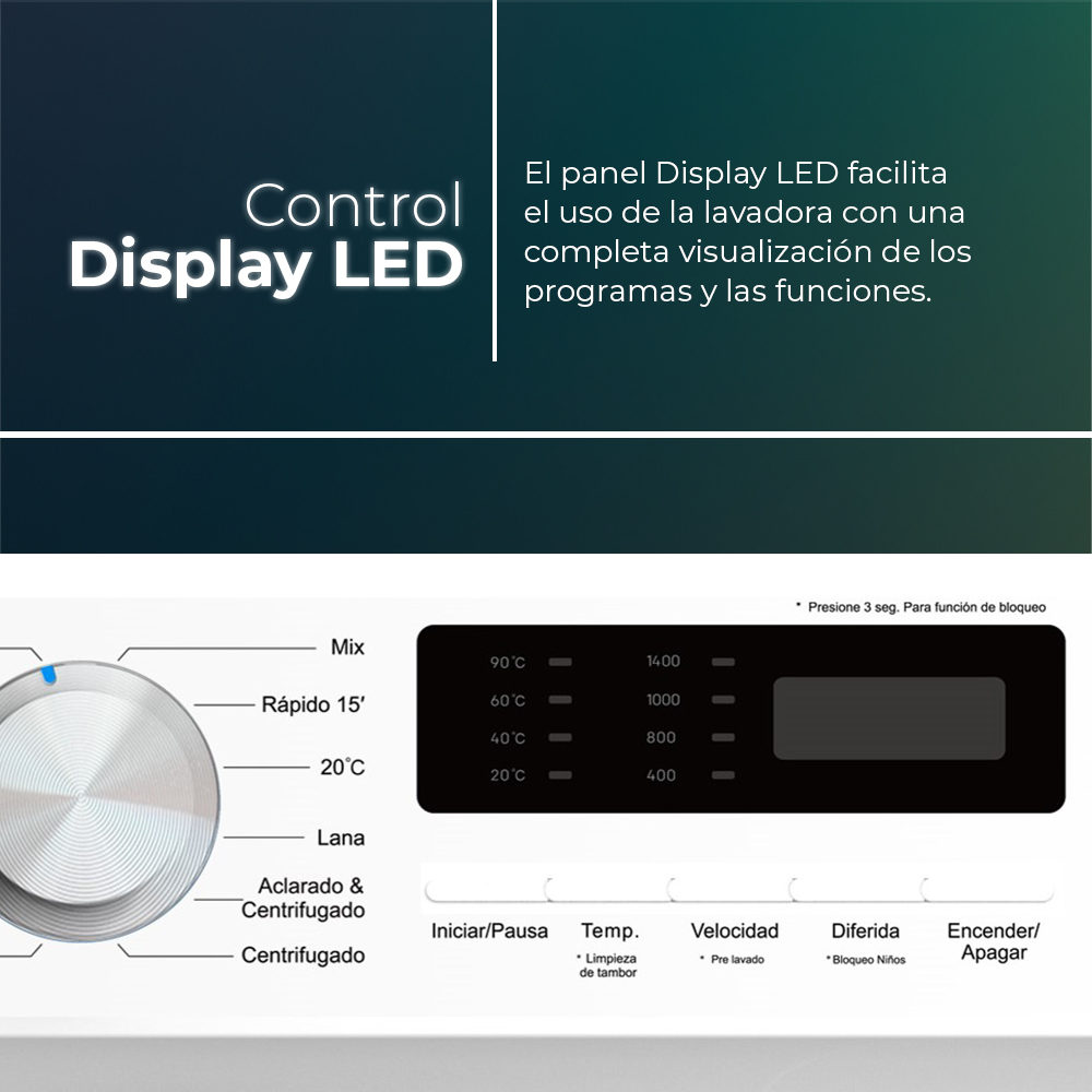 Estetica bianca con porta XXL scura, cestello in acciaio inox. Sistema di controllo elettronico con display a LED con 12 programmi e funzioni di lavaggio per garantire i migliori risultati e la cura del vostro bucato.